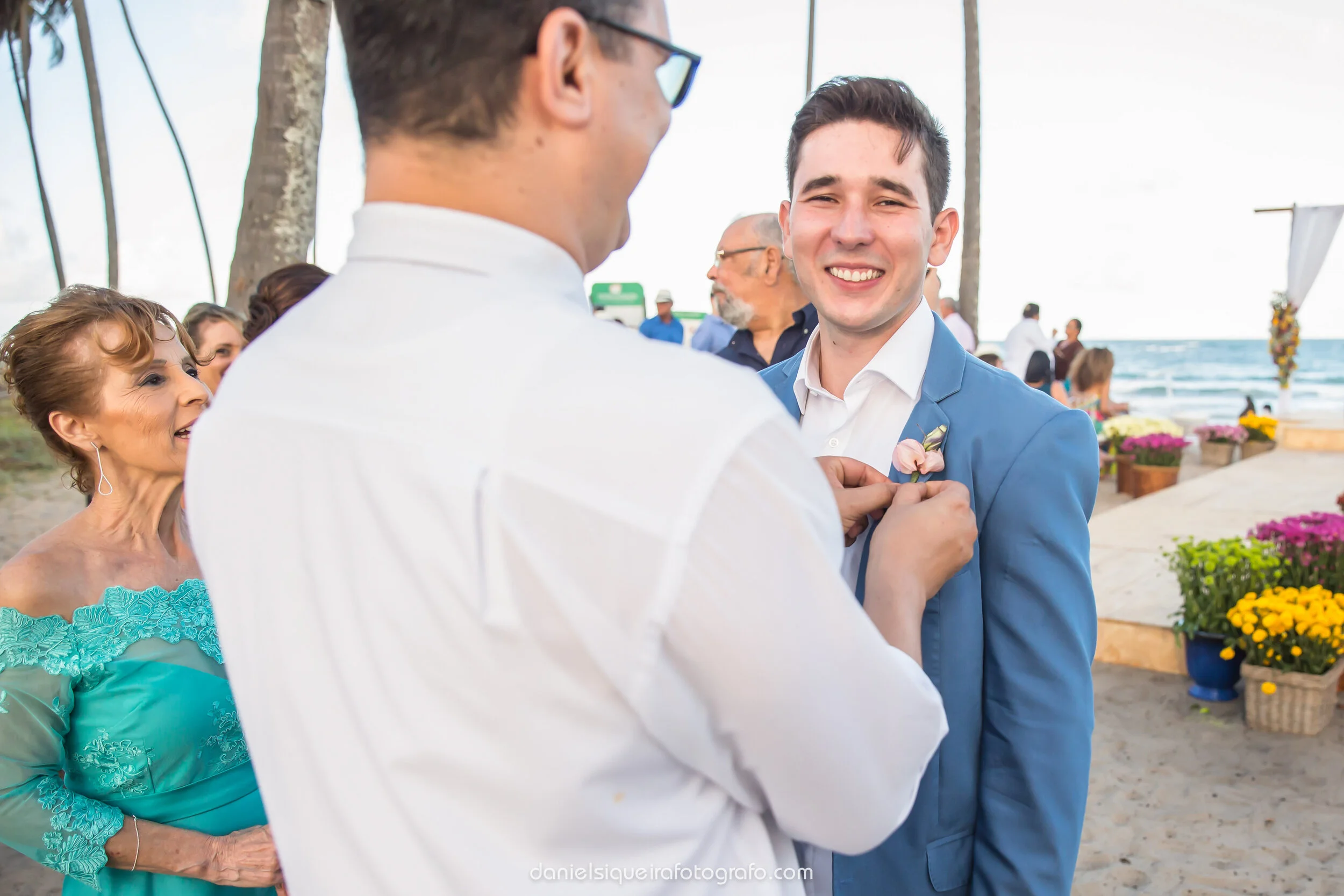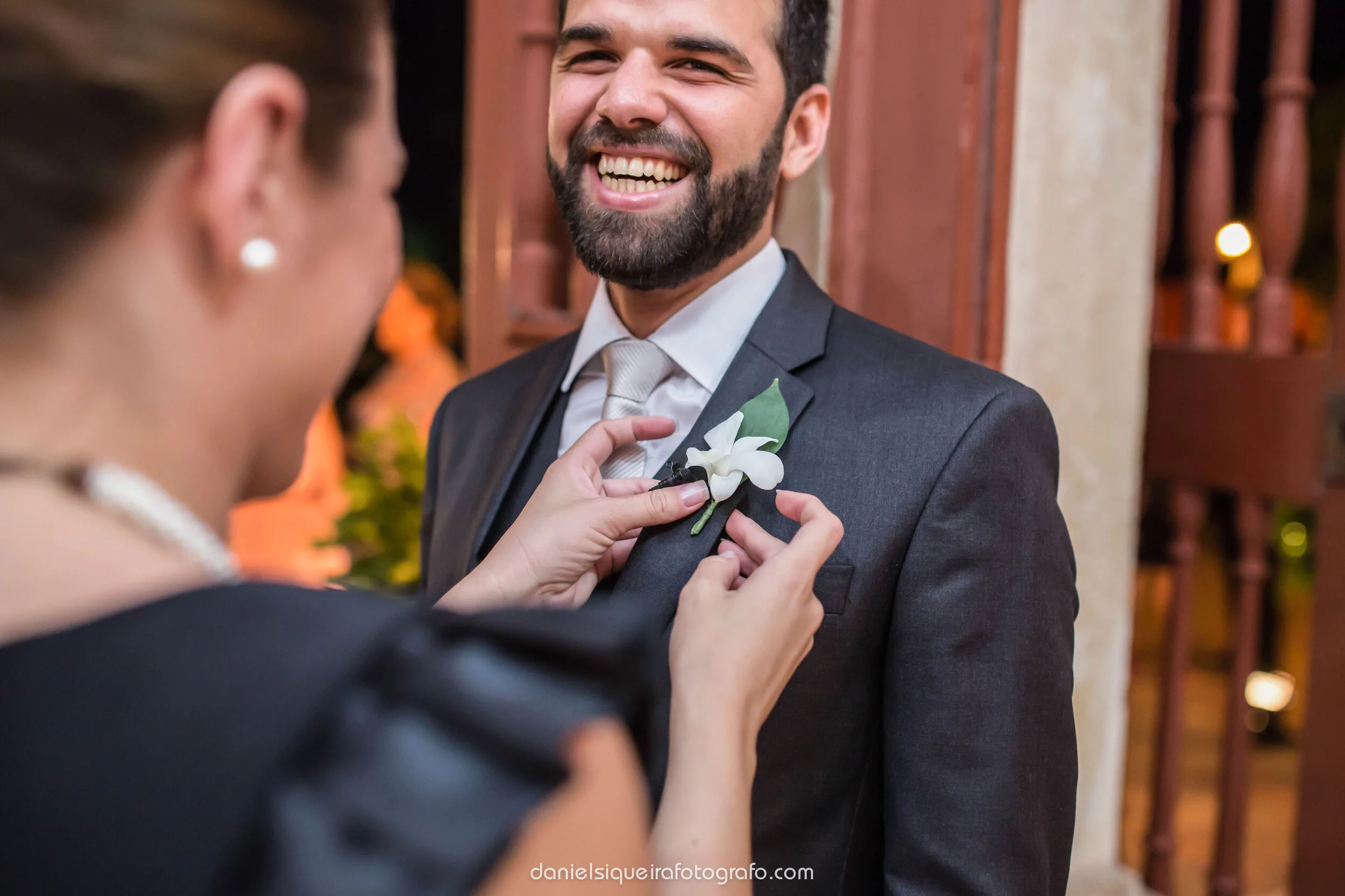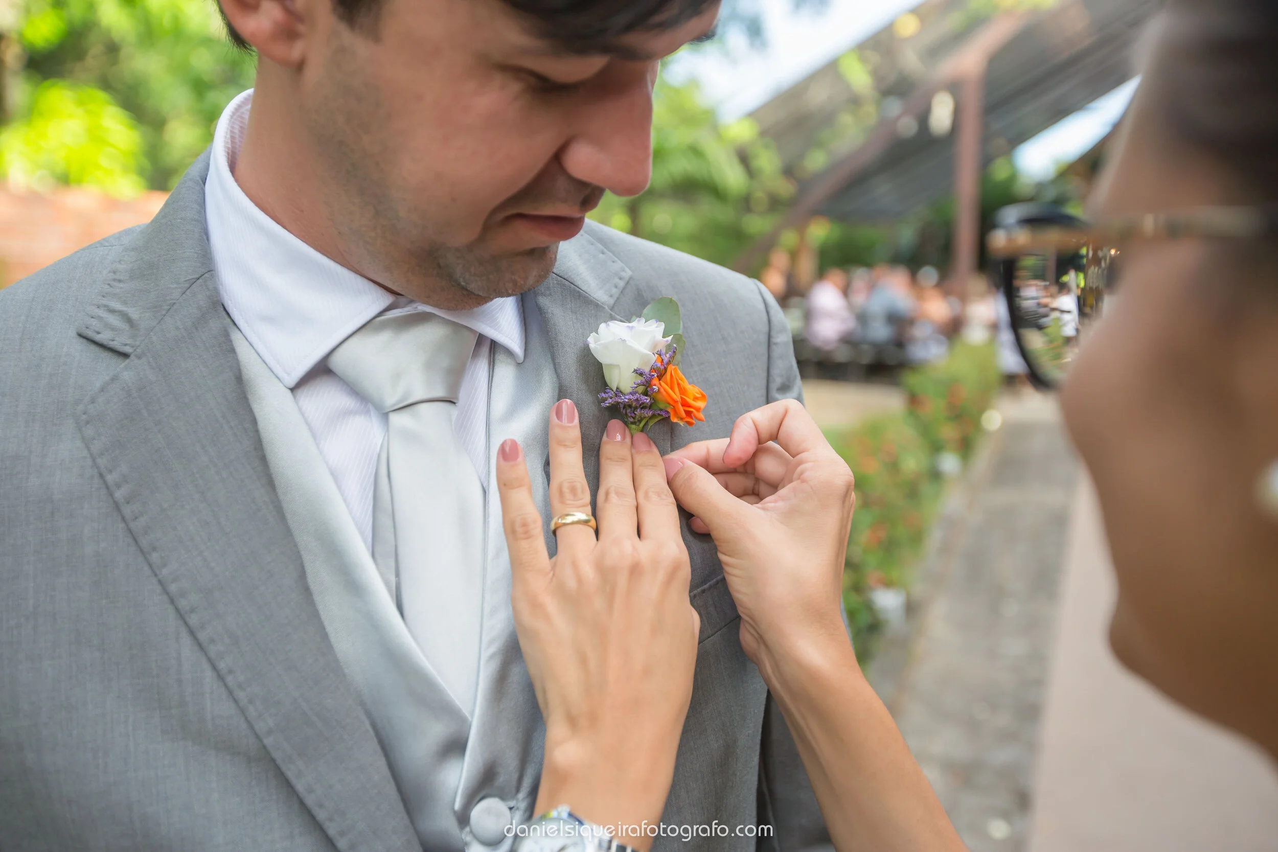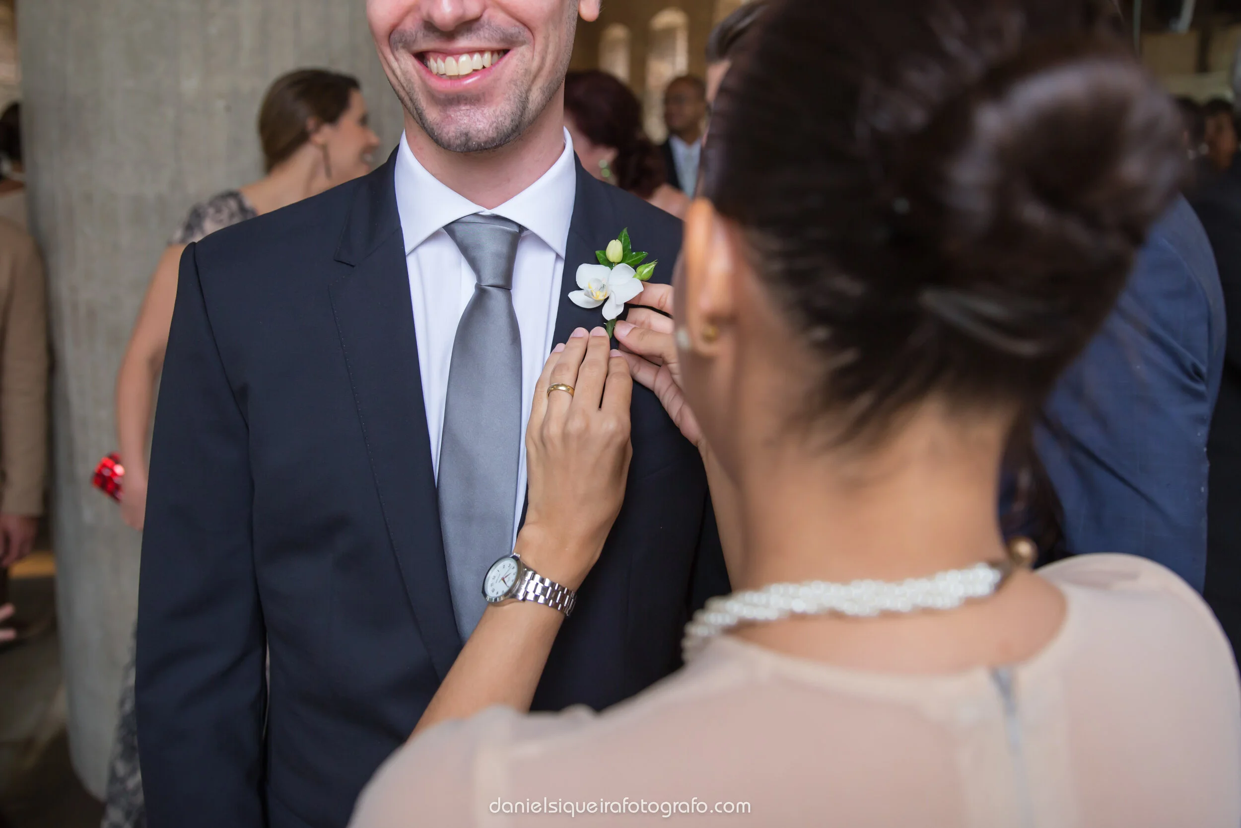 2) A gente pede para que os decoradores façam as corsages do Noivo e Pais diferenciadas dos padrinhos, existe uma tradição de que os únicos homens que tocam na noiva durante a cerimônia usam a flores diferenciadas (Não é lindo? :)). E se puderem ser iguais as do buquê da noiva, aí o significado se torna mais especial.
